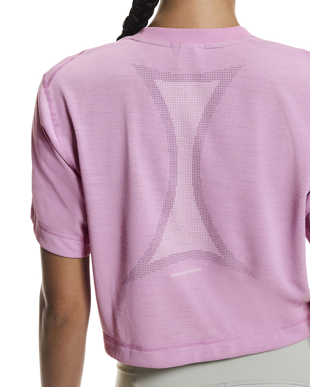 Fullkomið jafnvægi milli þæginda, frammistöðu og útlits. Einfaldur. Elegant. Klár í hvaða æfingu sem er. Bolurinn er með stuttu sniði; crop-top.