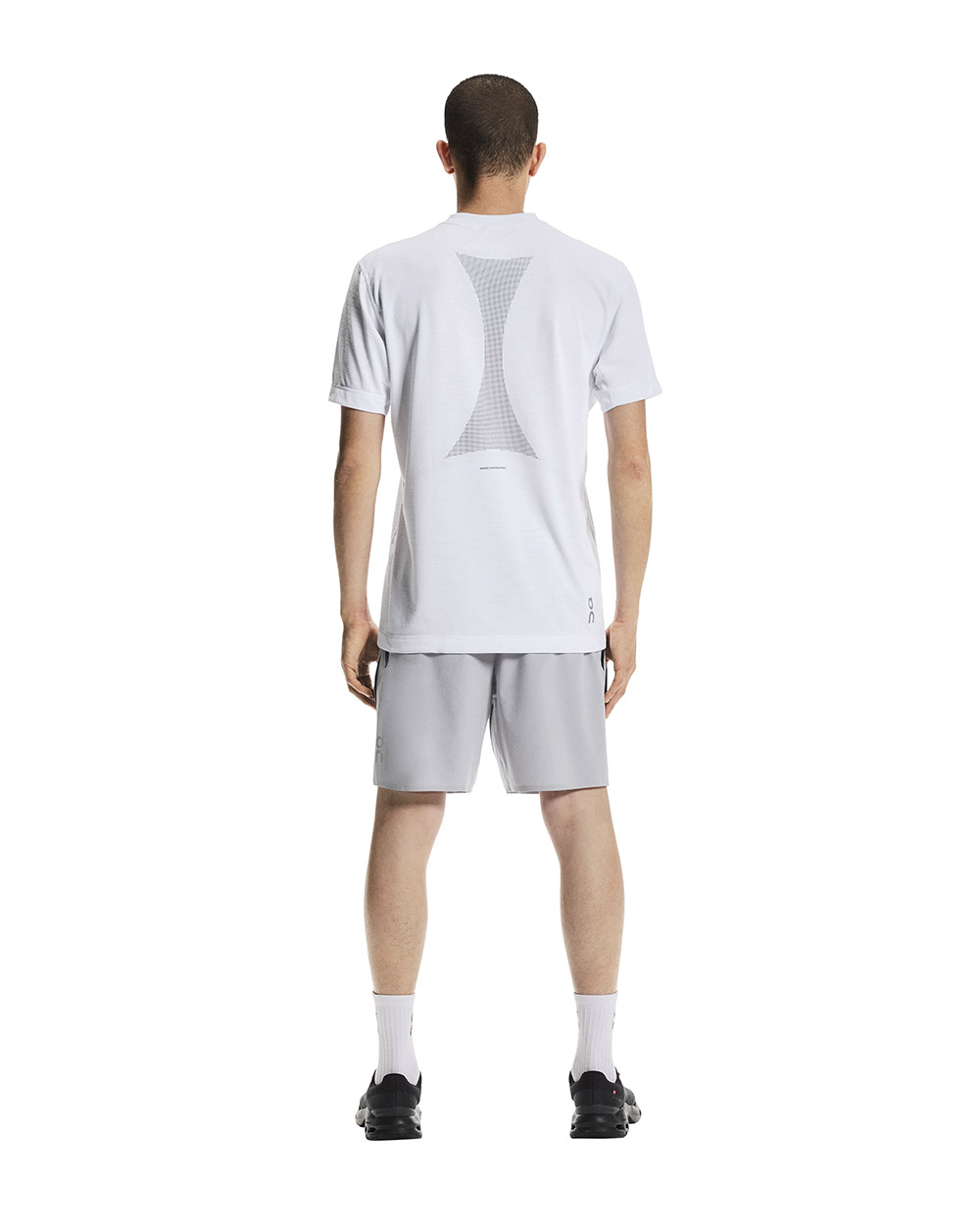 Að framan er lítið On‑merki. Aftan á er áberandi grafísk prentun sem gerir flíkina að skýrum hluta Train‑línunnar.